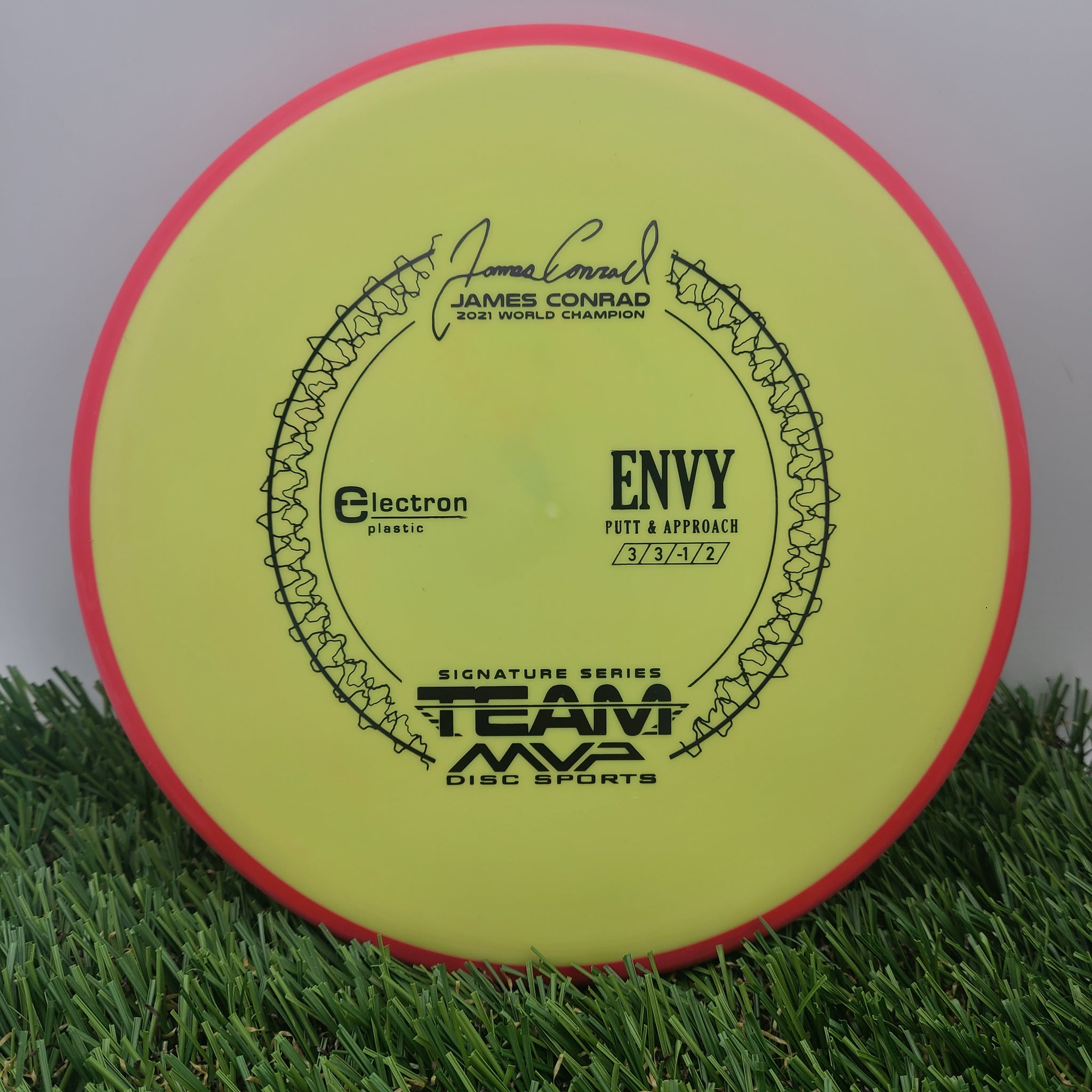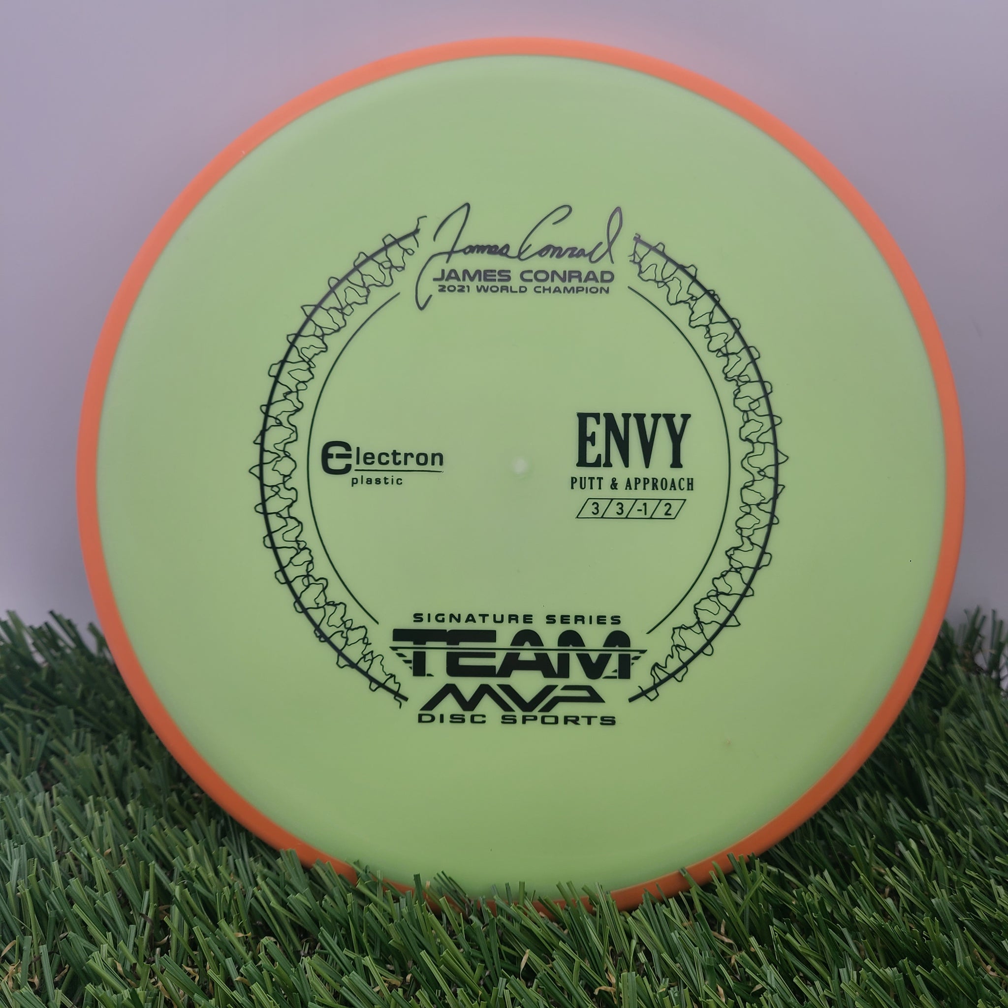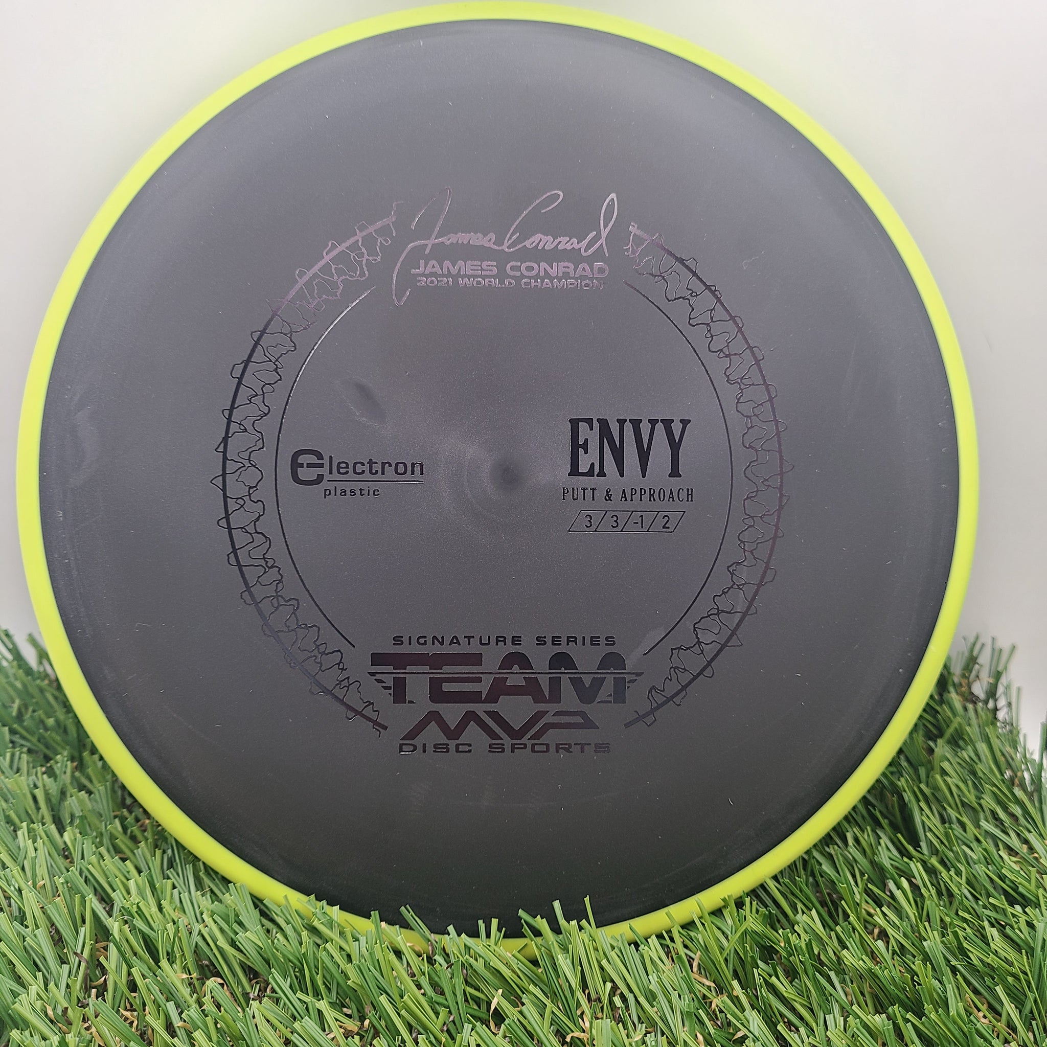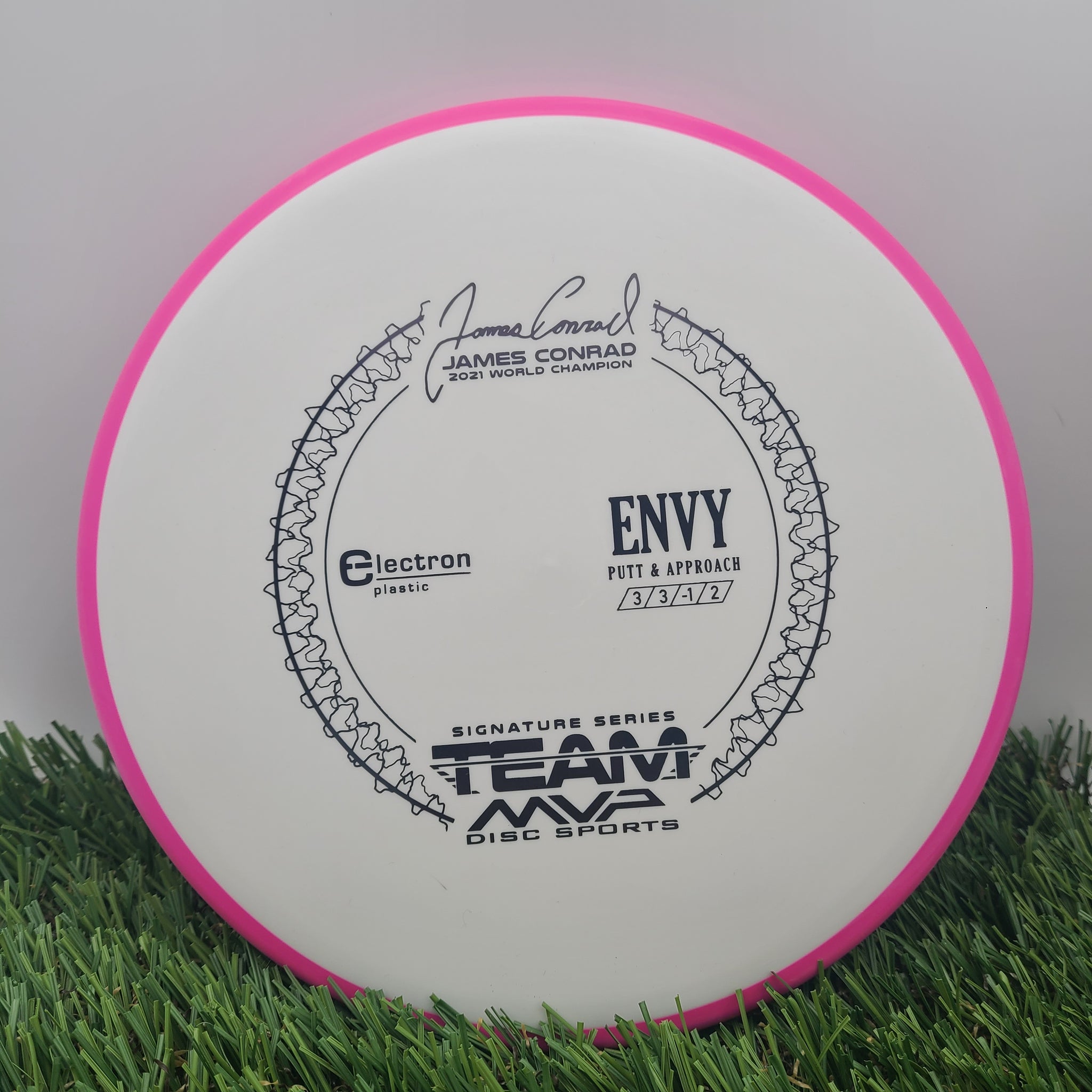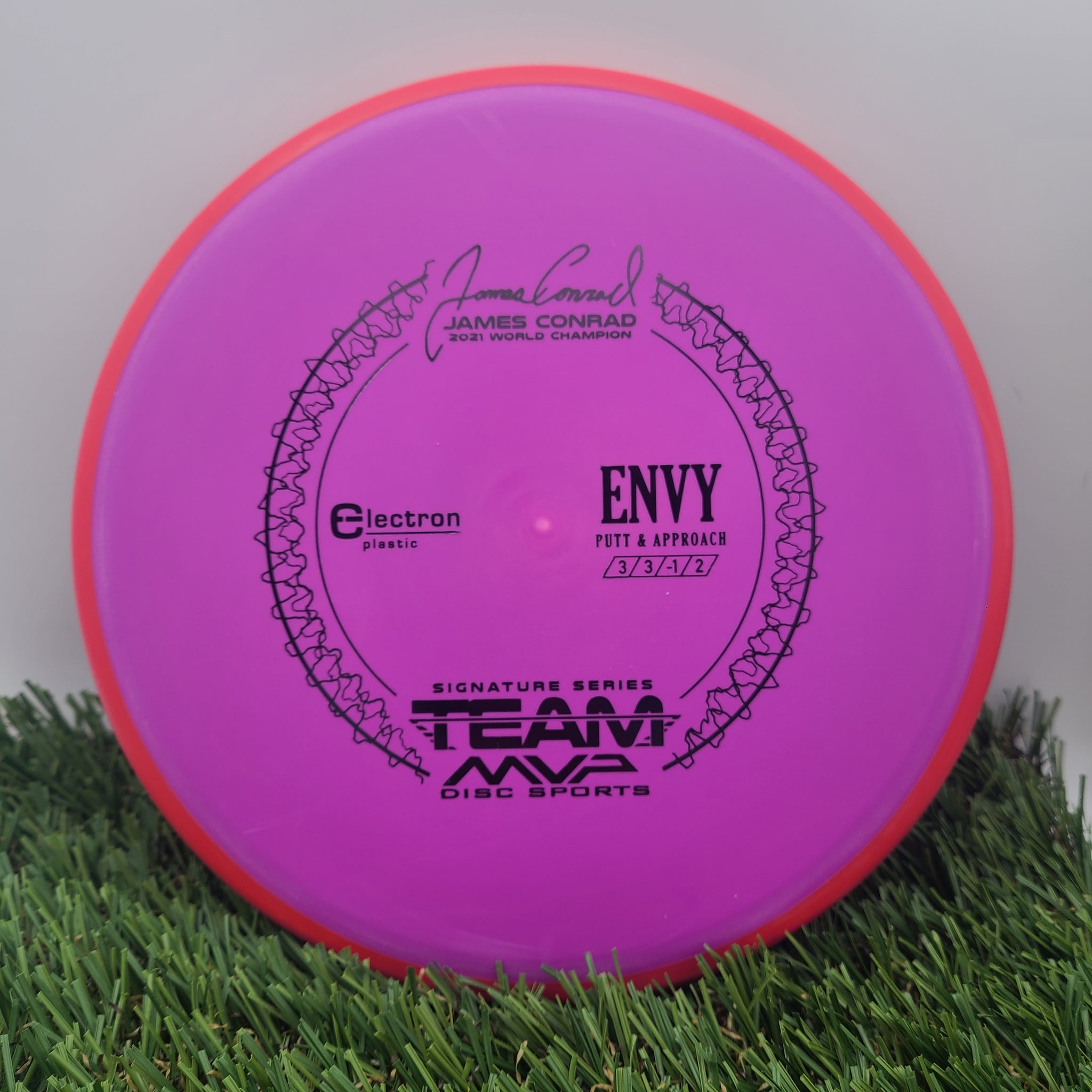 The Envy is a low profile slightly overstable putter. This disc is very popular for approach shots and has become a favorite of many players for straight forehand shots off the tee and on approaches.