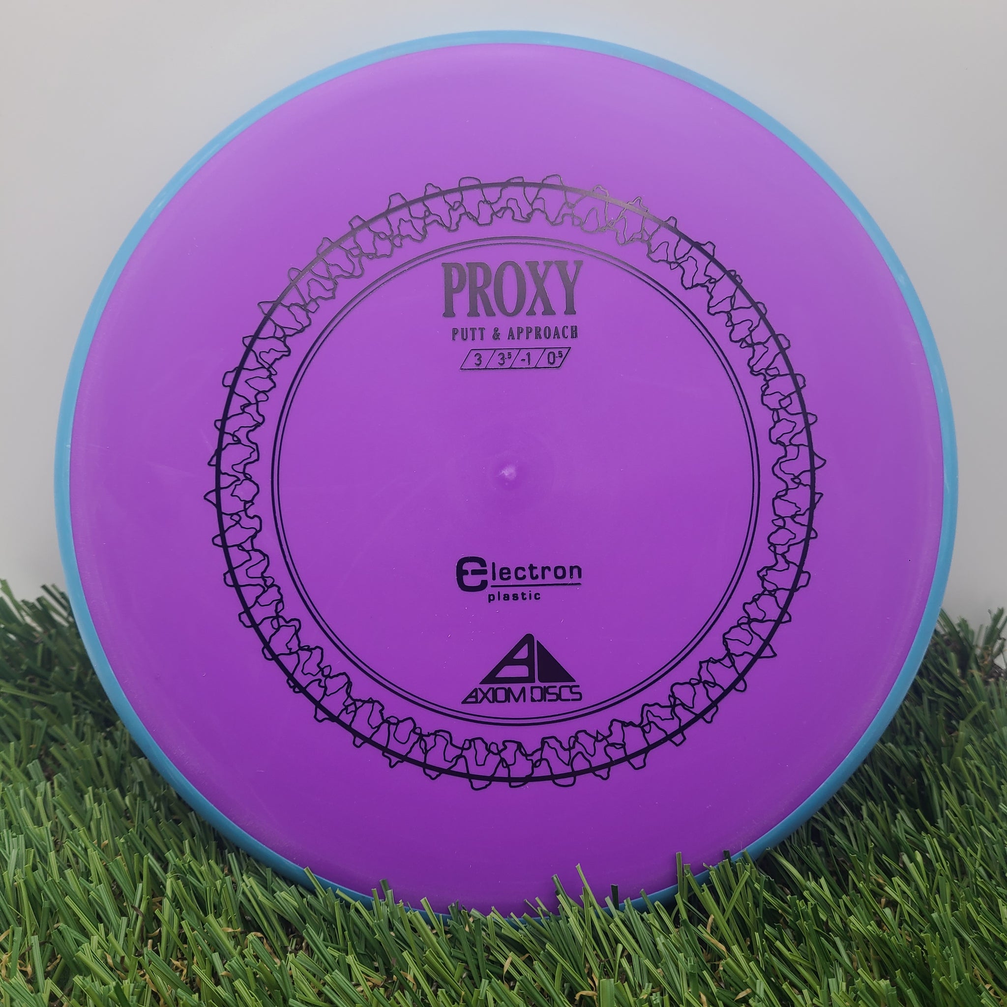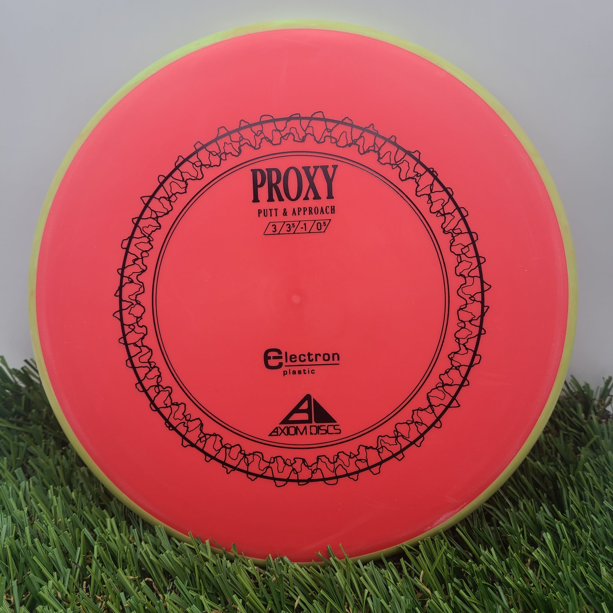 "The Proxy shares the Envy mold’s core, lending the same low-profile feel and solid grip, along with a short wing width and wide flight plate diameter for superior glide. The Proxy sets itself apart from the Envy with a remarkably straight forward-fading finish. A bit of high-speed turn potential allows the Proxy’s lines to be manipulated over a broad range of power, and helps less powerful throwers achieve straight putter drives."