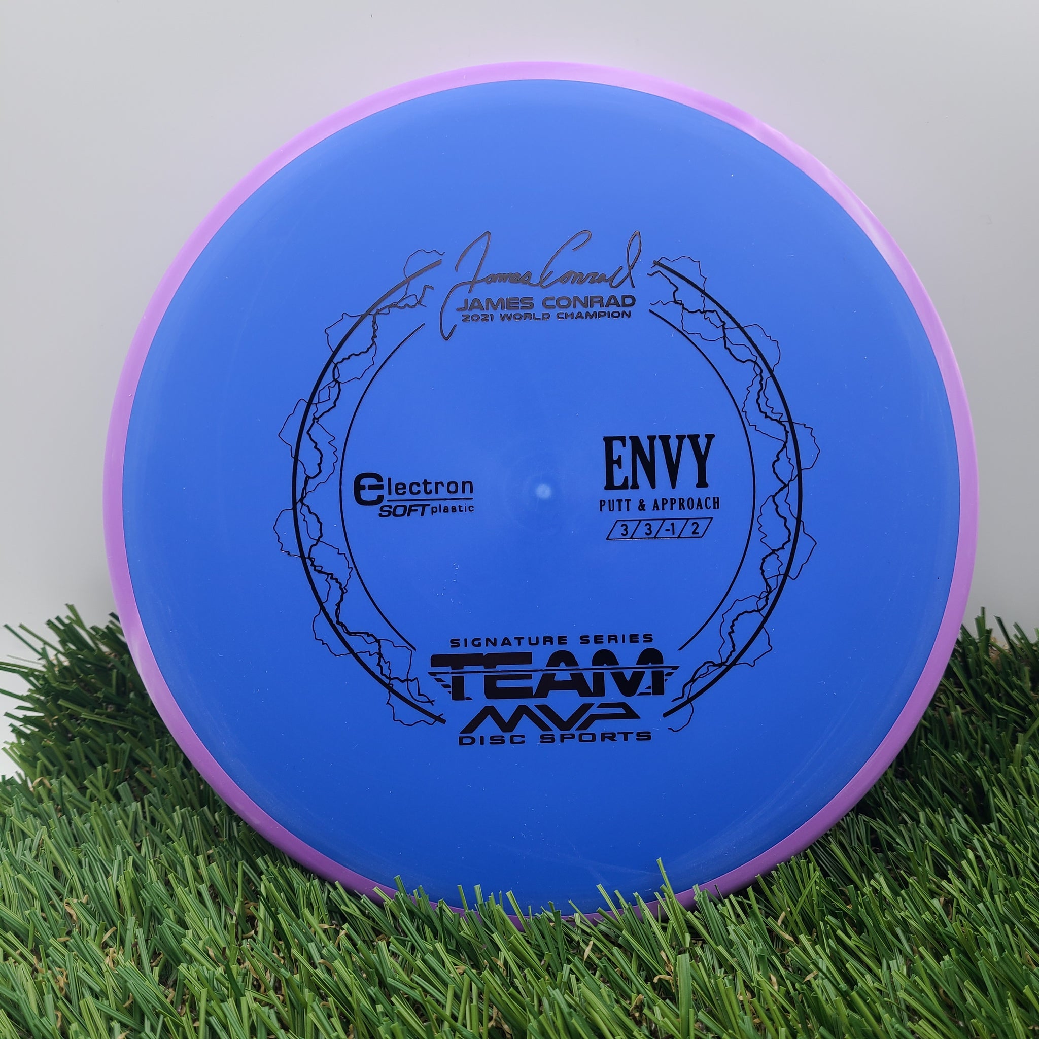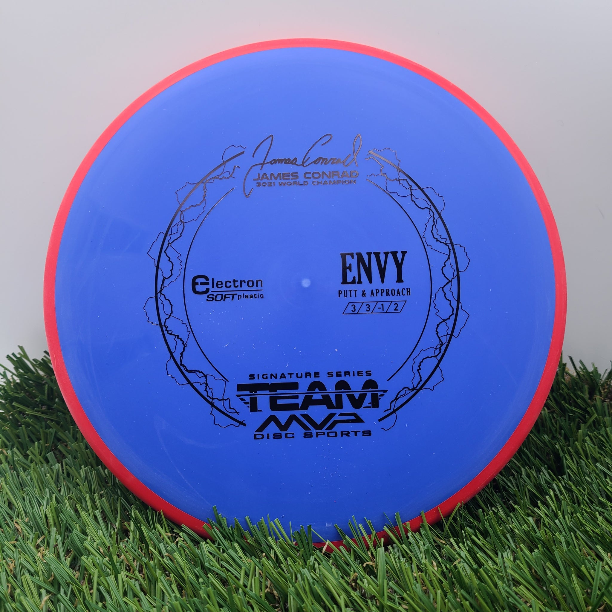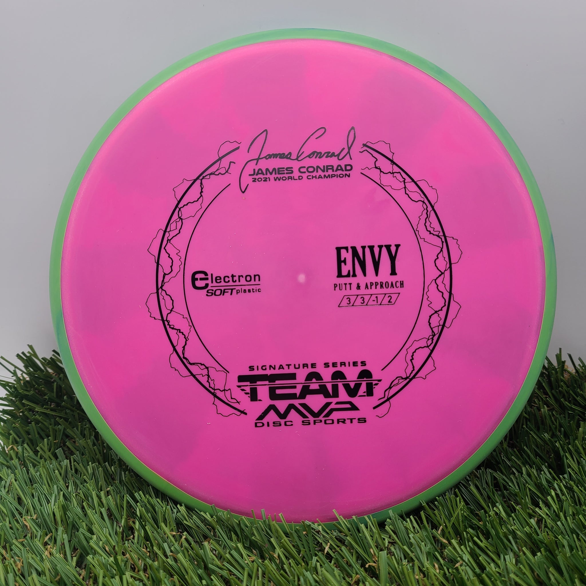 The best driving putter in disc golf is now forever linked with the best putter thrower in disc golf, and we wouldn’t have it any other way. The first James Conrad Signature Series disc, the Envy in Electron plastic, provides the grip and confidence needed for greatness.