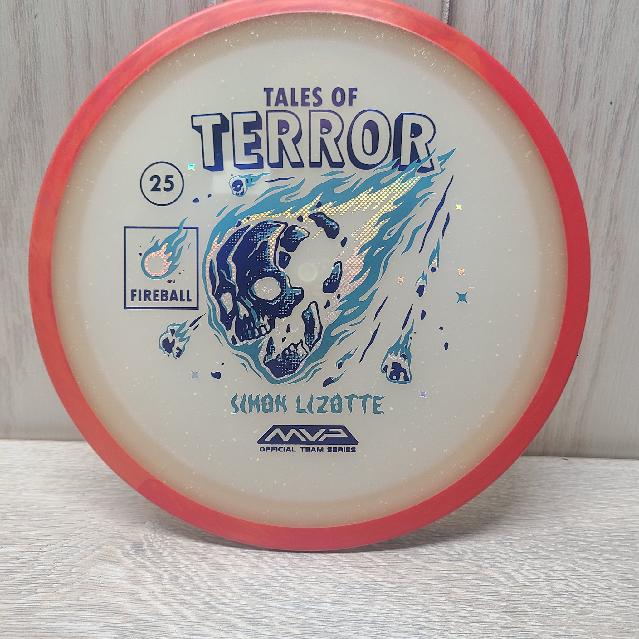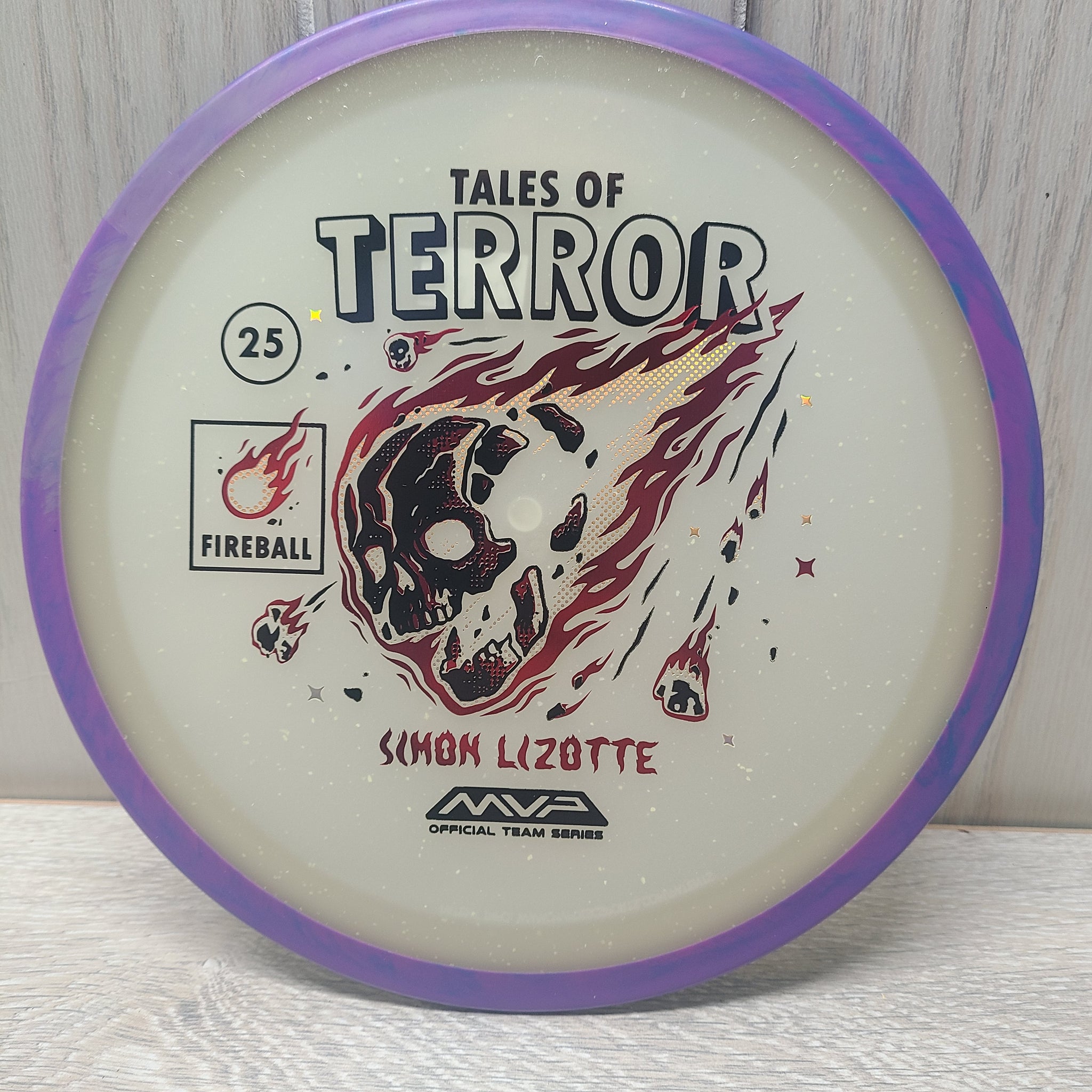 Our first release in our new Particle Eclipse plastic is the Particle Eclipse Fireball! Hurtling towards a catastrophic fate in this stamp brought to us by Matthew Jorde, this flaming doom has never looked better. Made with our industry-leading Eclipse plastic, this new blend of glow with colorful particles inside accentuates the otherworldly feel of this space faring skull about to rain down upon us. Equally suited to backhands and forehands, the Fireball is an overstable driver perfect for wind fighting and situations when you need the dependable hook of its high fade for accurate placement shots. Wreak havoc on the course by grabbing your own Particle Eclipse Fireball today!