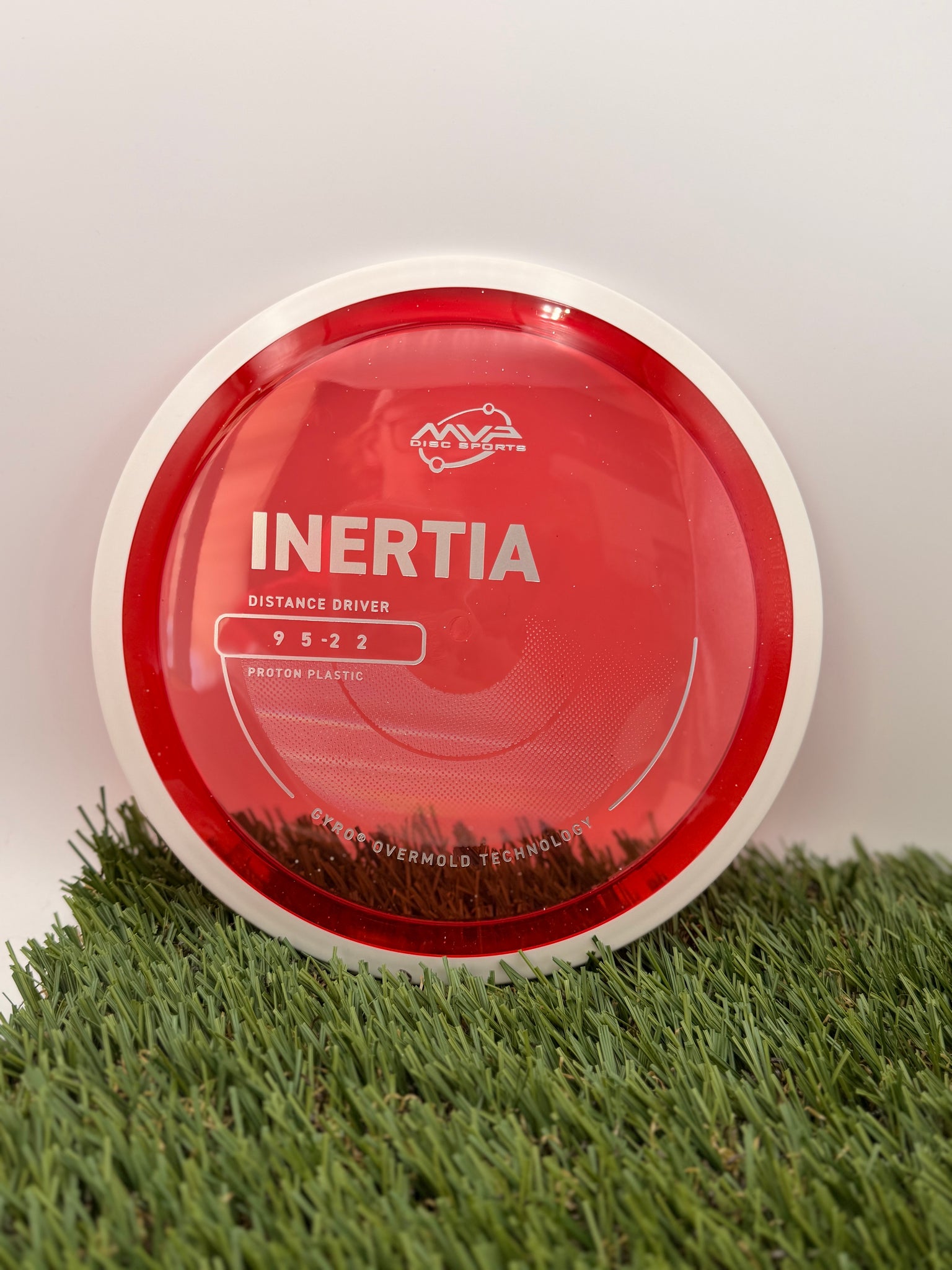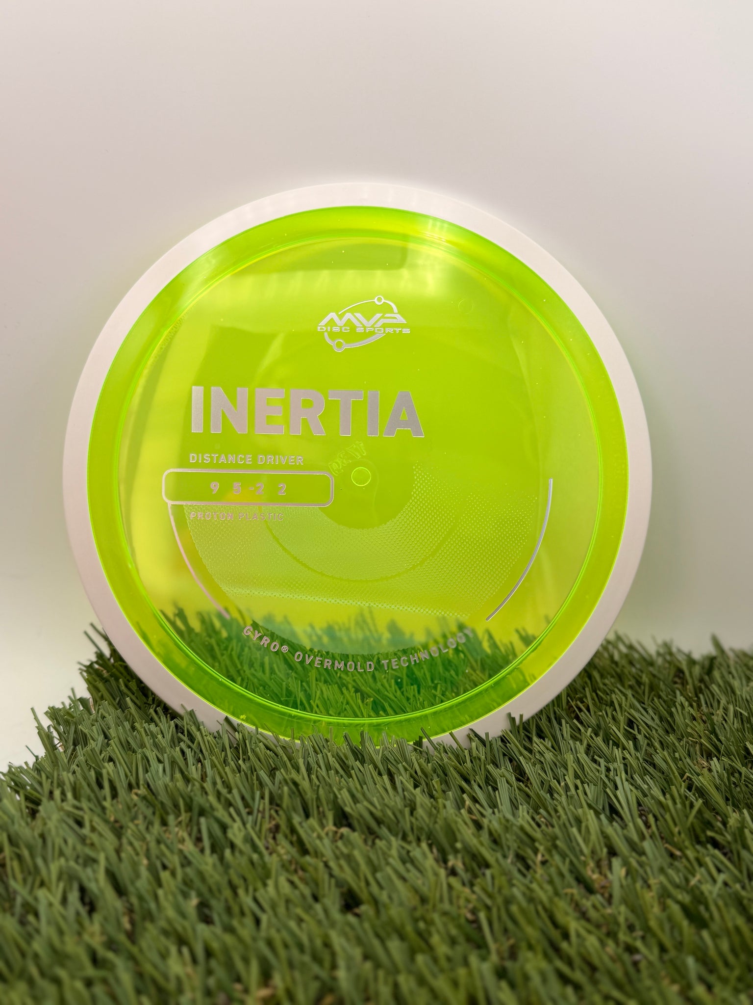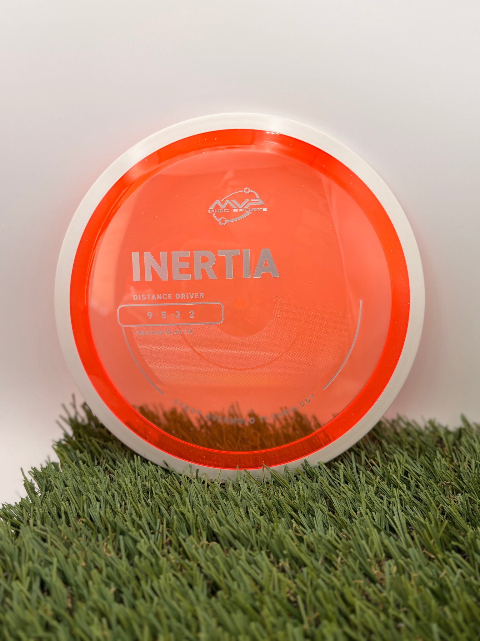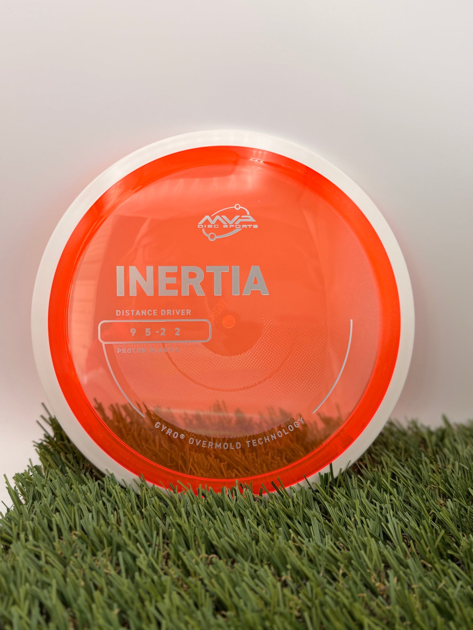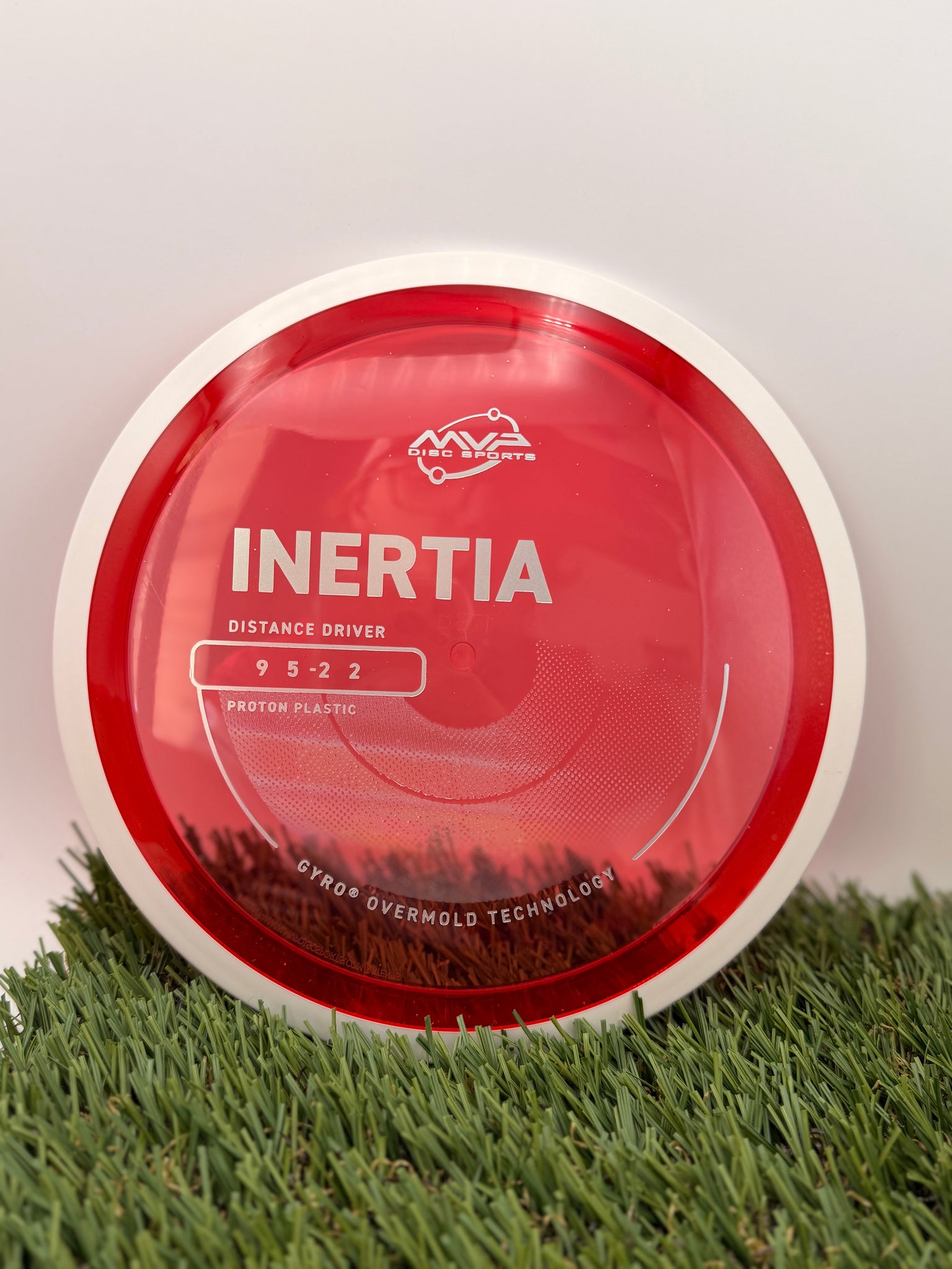 The Inertia is the first true distance driver in the MVP line. This disc is described as a “controllable distance driver” with GYRO Push that gives throwers increased control for distance drives. The understable profile of the Inertia will give powerful throwers excellent distance on hyzerflip throws. For less experienced players, the Inertia will provide a neutral flight with reliably straight distance.