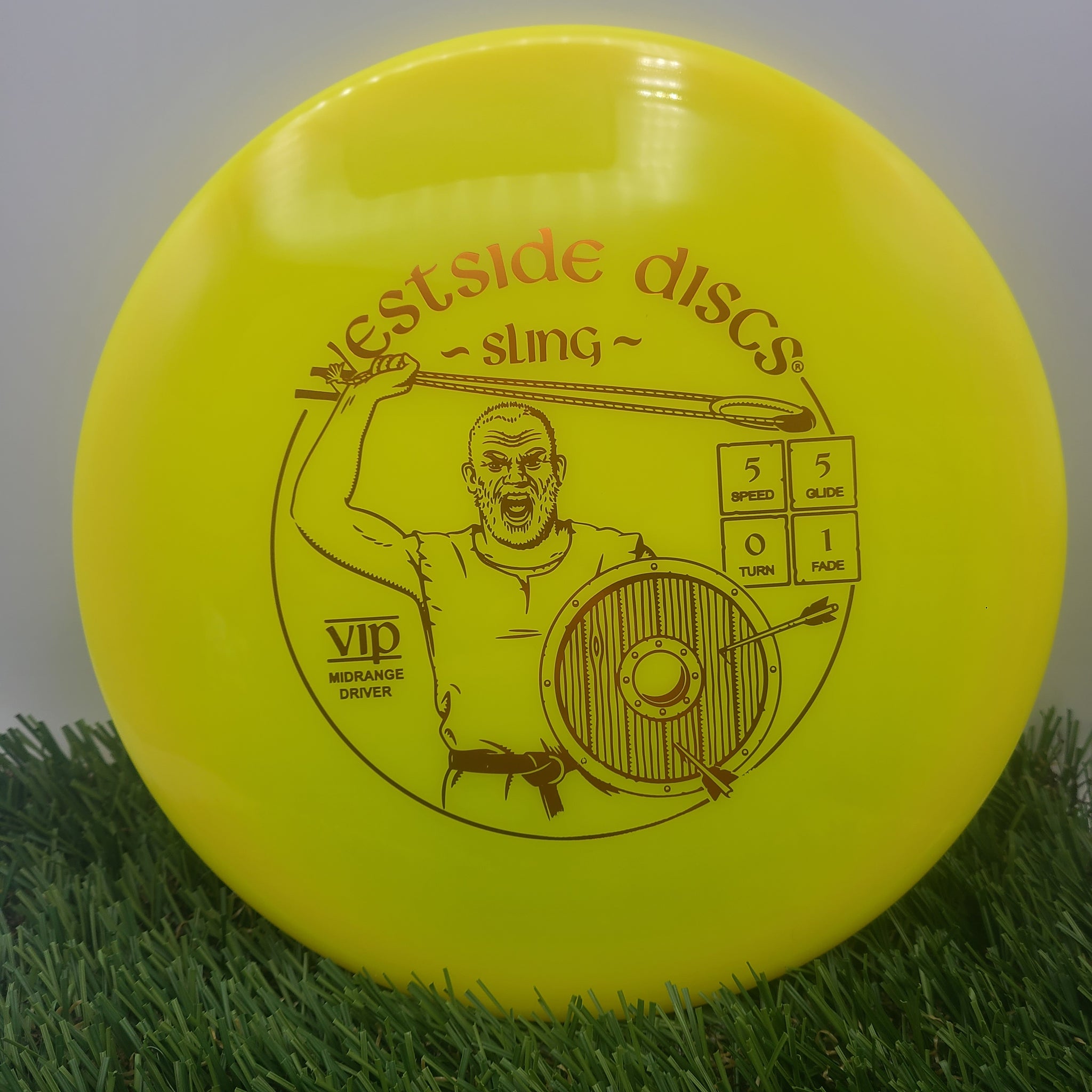 The Westside Discs Sling is the midrange disc of the 2016 Trilogy Challenge. The disc was released initially in Tournament plastic and later in the year in VIP plastic. It is a very straight flyer, that leans to the slightly understable side. It will hold any line you put it on, which makes it a great all-purpose disc!