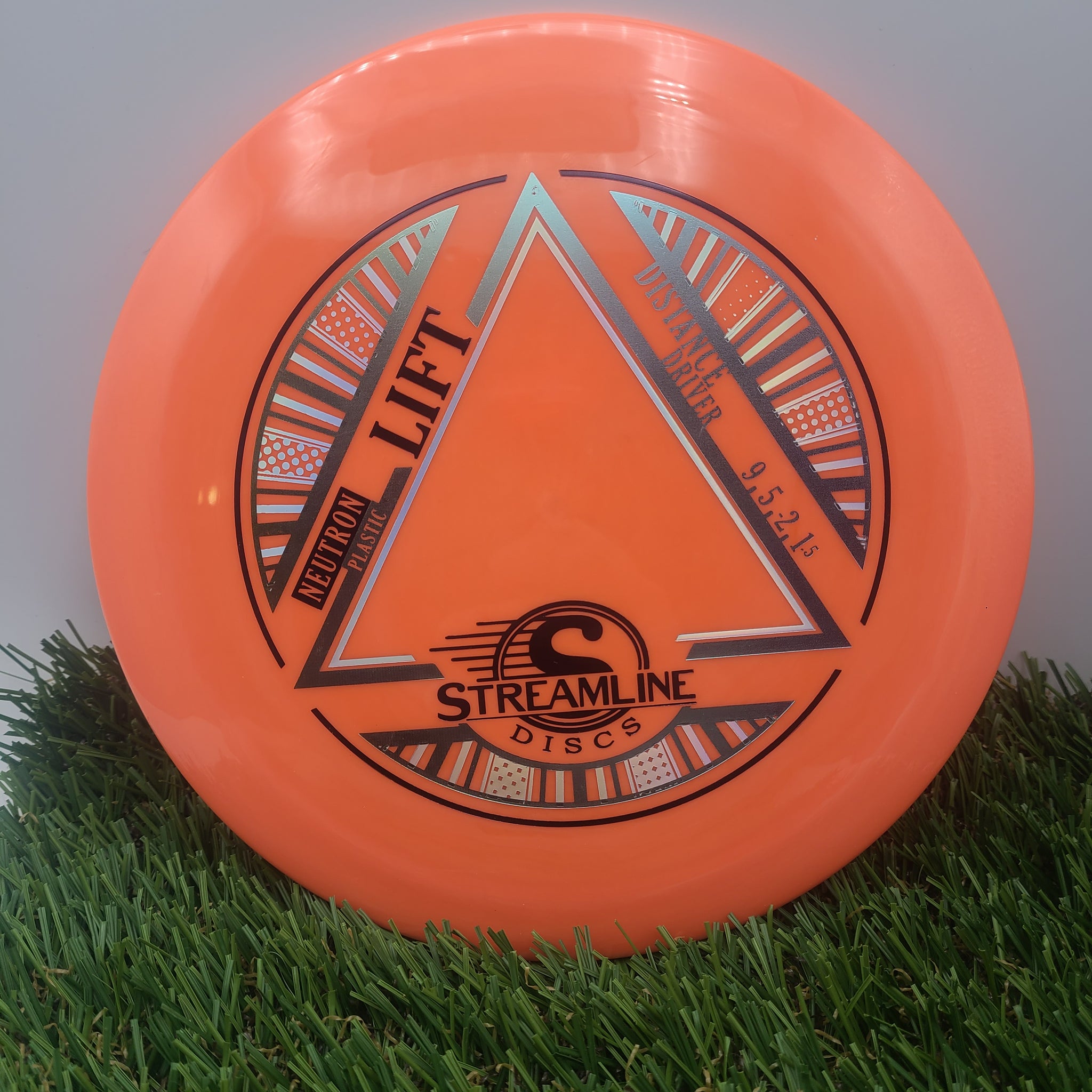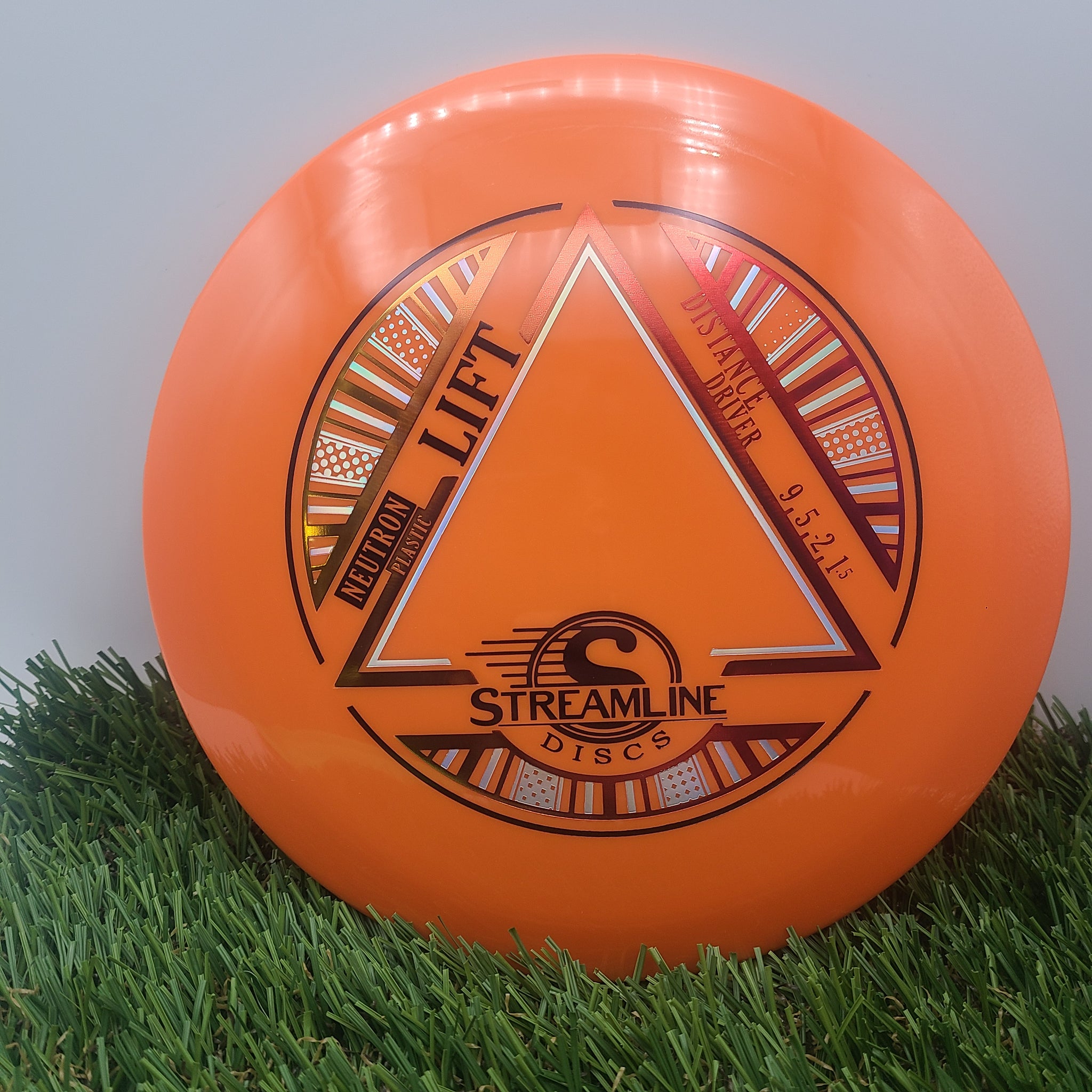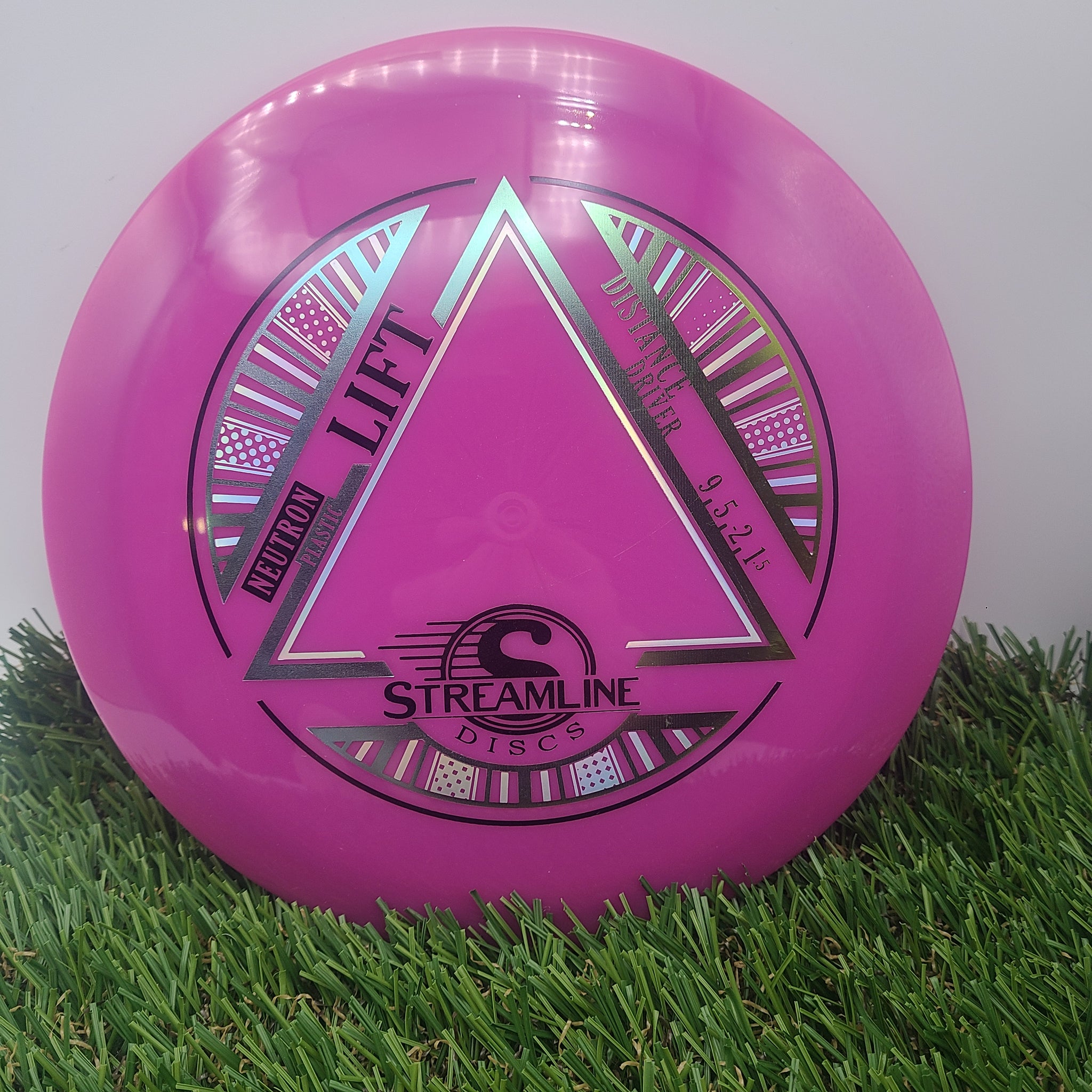 Prepare for liftoff with the new distance driver from Streamline, the Lift! The Lift is Streamline’s new understable distance driver, designed as a straight flying driver with a comfortable rim size and slightly domed profile. The Lift is the second disc along with the Flare in the new 19mm Speed 9 Driver Class for Streamline. In Streamline Neutron Plastic the Lift has premium grip and durability, along with a huge variety of Neutron and Cosmic Neutron color options. For controllable flight lines with effortless glide, activate Bernoulli’s principle with the new Streamline Neutron and Cosmic Neutron Lift!